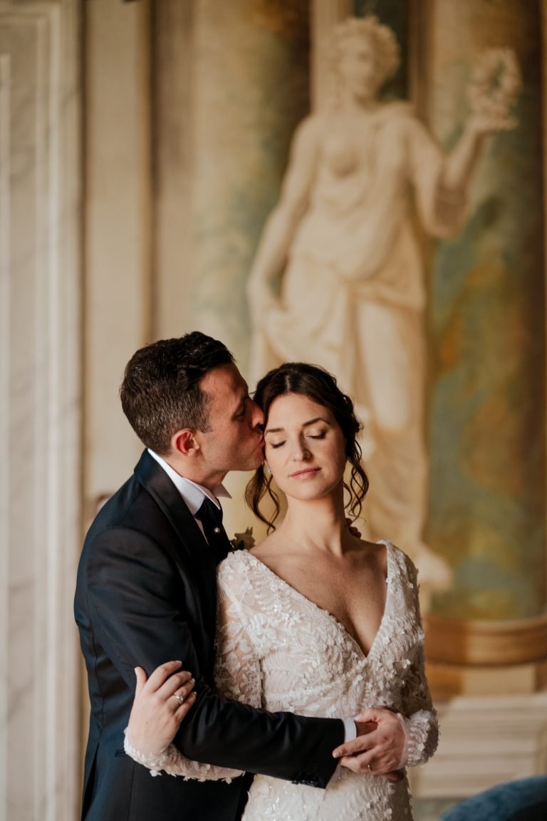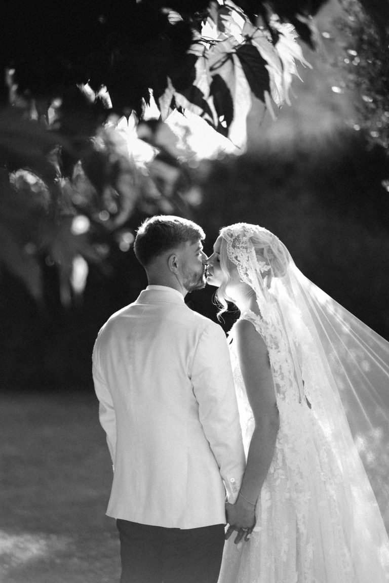 Bride in wedding dress walking in the Tuscan countryside